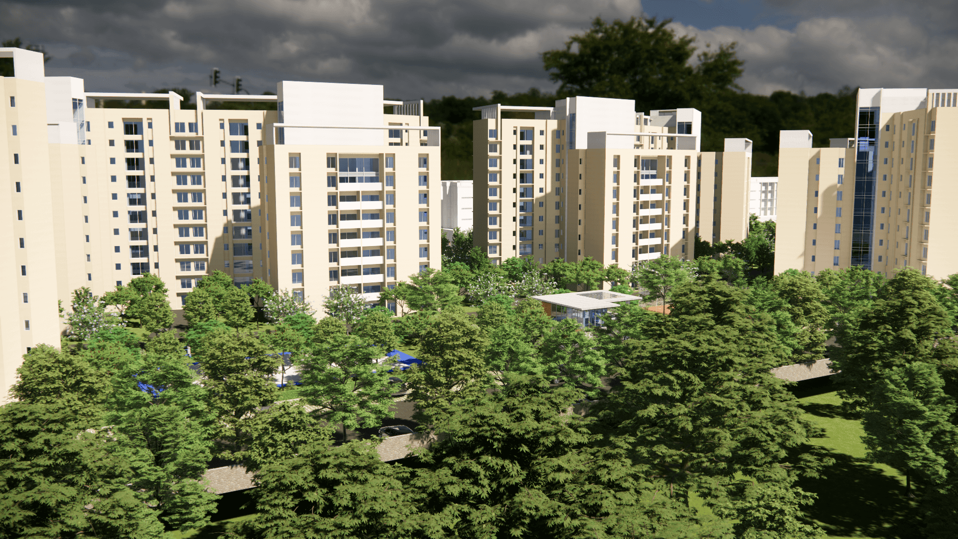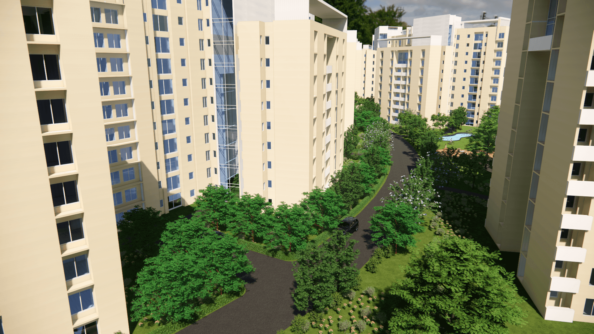 Situated in Manjalpur, the finest residential locality in the city, this master plan has 28 towers consisting of around 1300 wide ranged apartment types. A high-end commercial complex running along the length of the access road gives a platform for a plethora of retail outlets. The site also consists of a club building equipped with facilities like swimming pool, etc. A temple and badminton, tennis and basketball courts are also located in different pockets of the site.