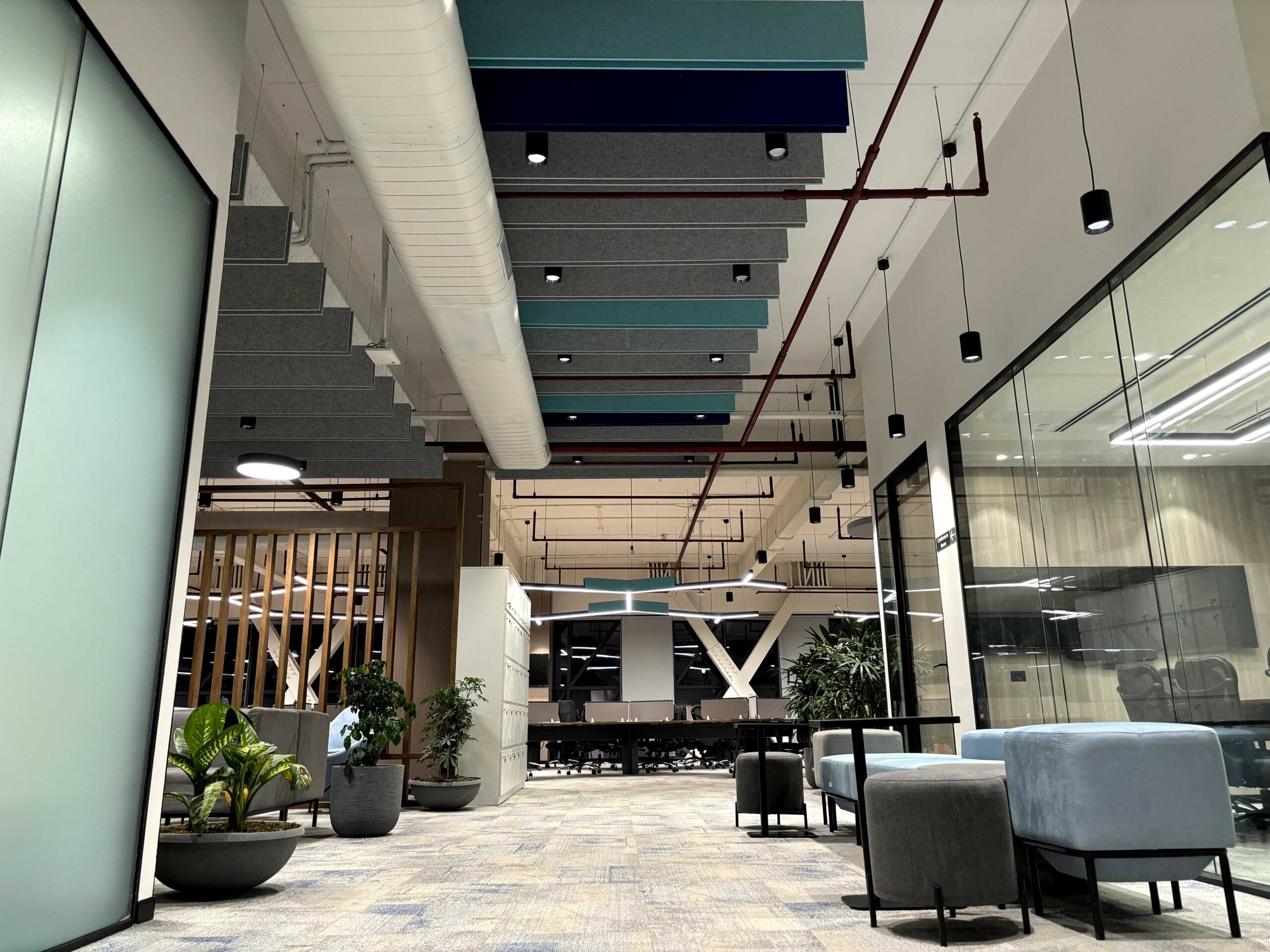 The project was executed as a comprehensive Design-and-Build project covering 54000 sft of office space spread over three floors housing three different verticals of the organization. The scope of work was comprehensive fit-outs including overall Fixed Interiors, Furniture, MEP, IT and LV infrastructure.