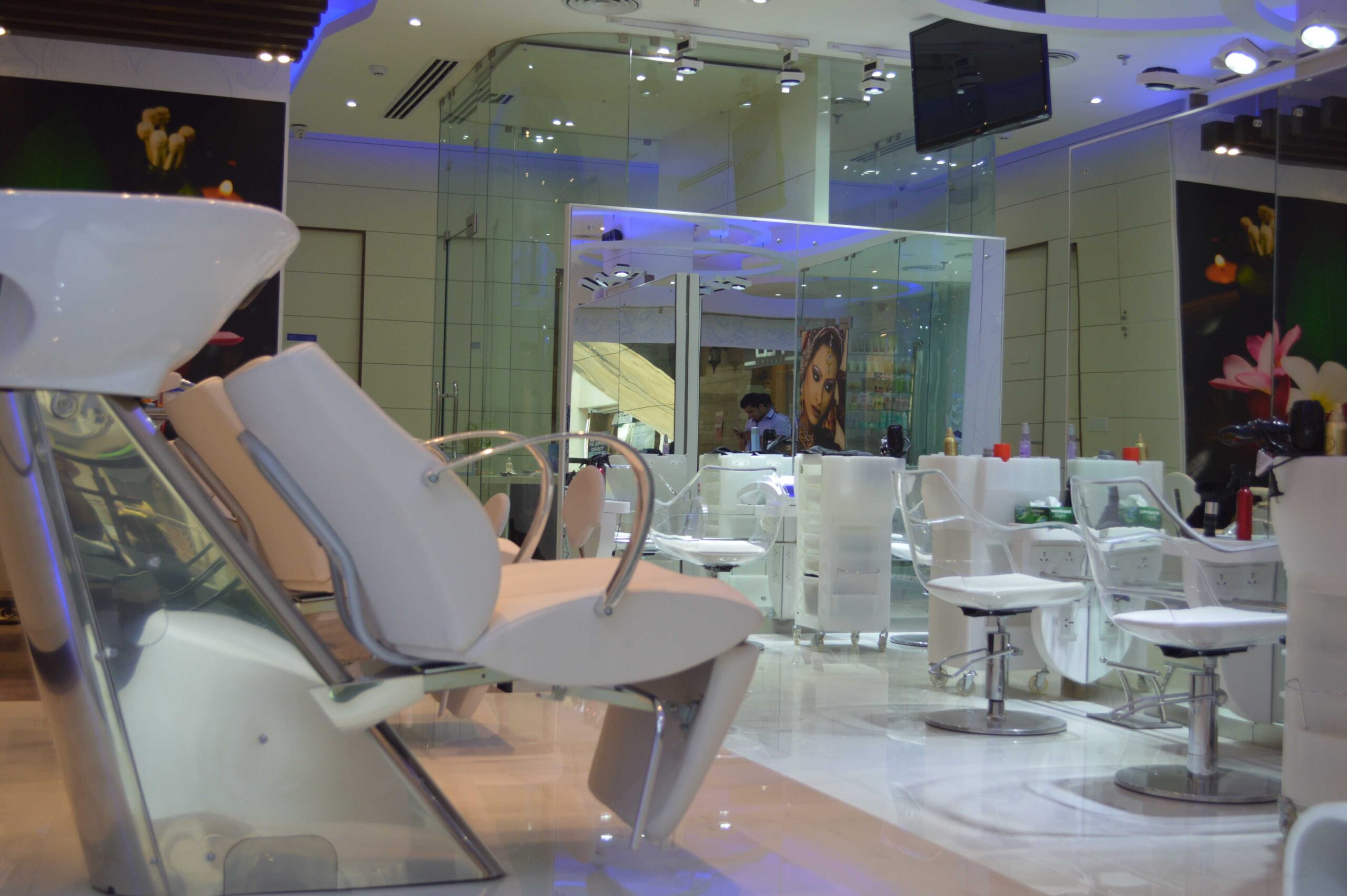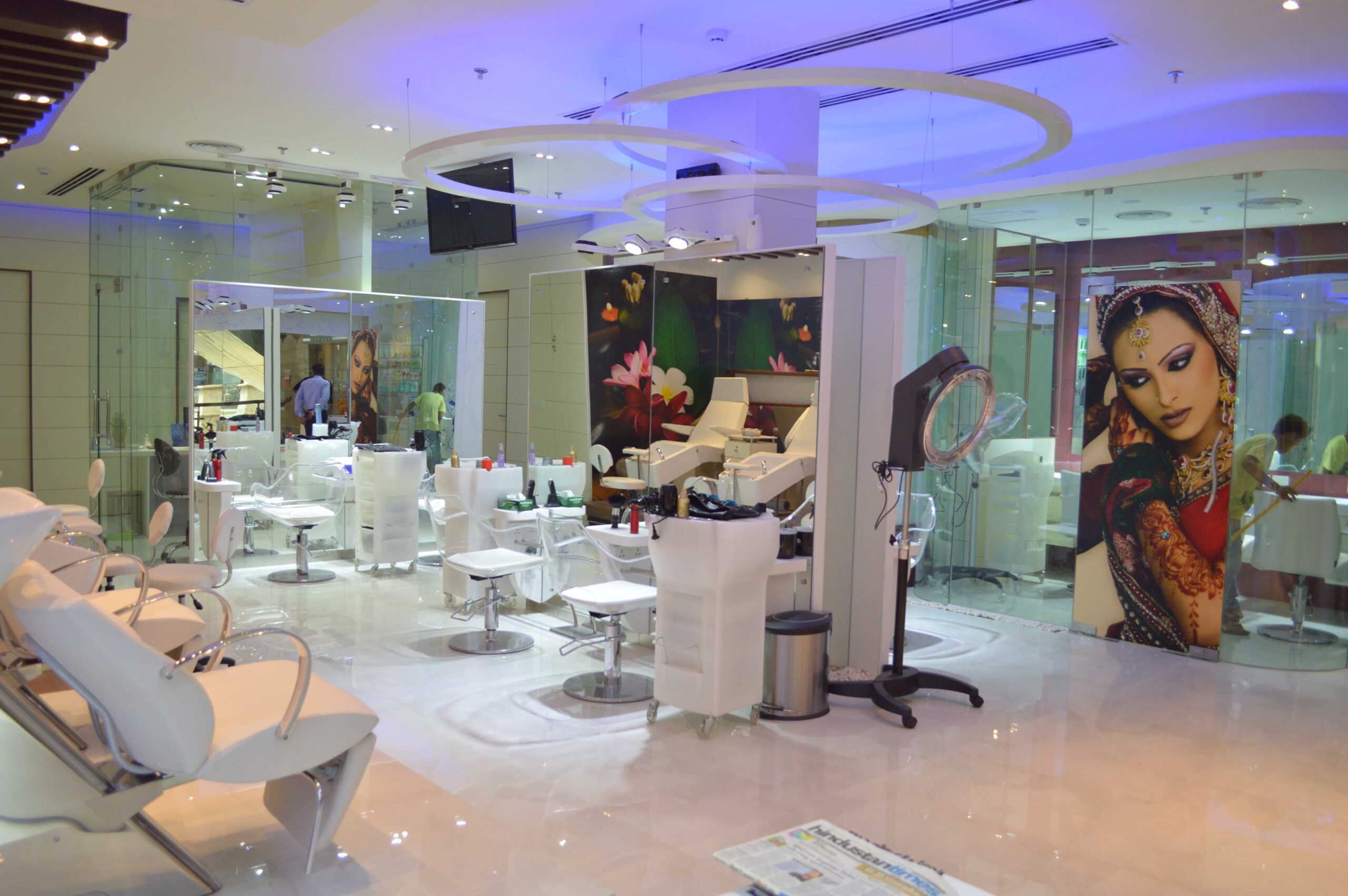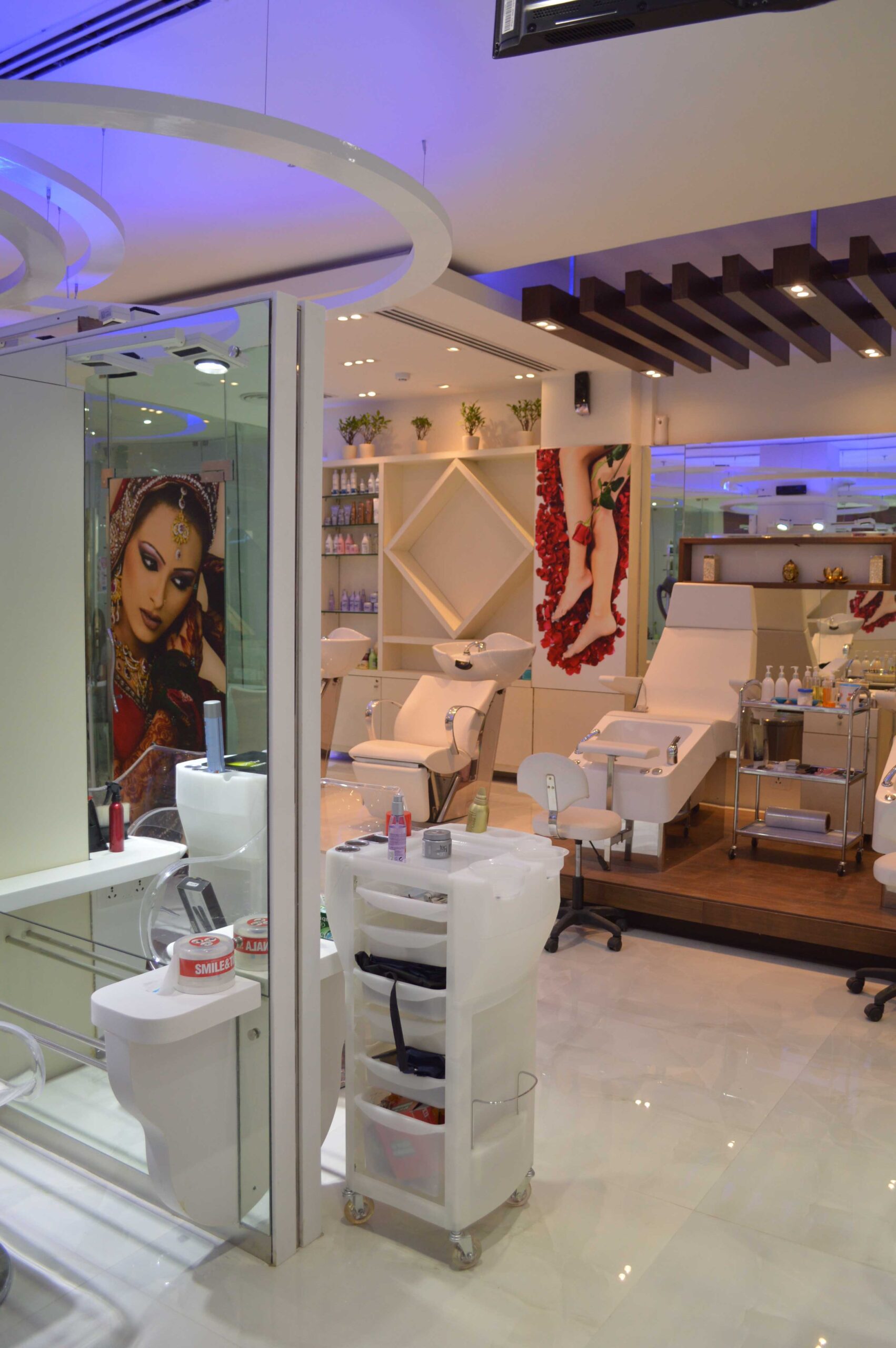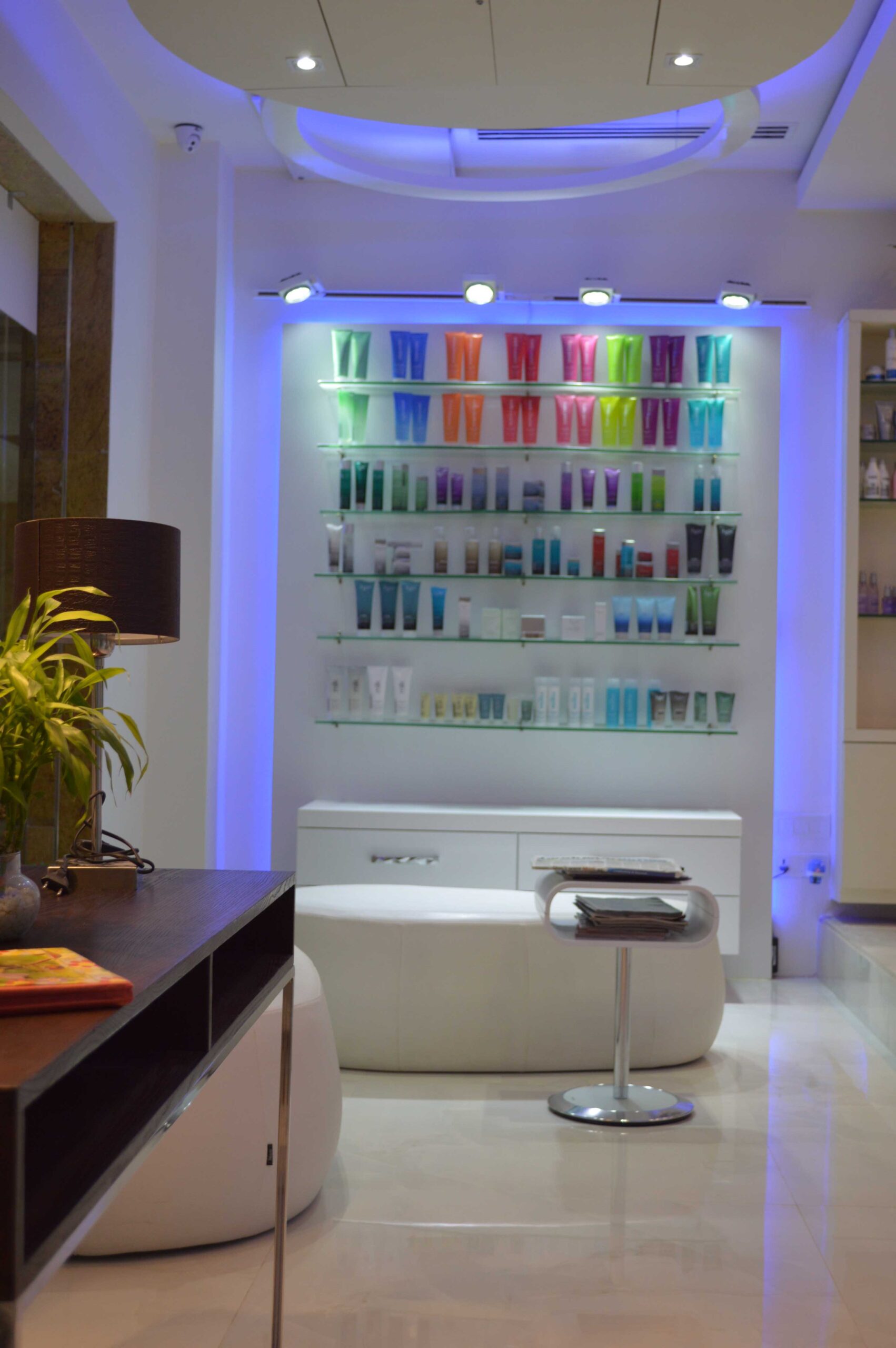 This luxury spa features treatment rooms, mineral bath, salon, fitness area, yoga, and meditation spaces. Support spaces include retail sales, lounge, and locker rooms. The project is located in various locations within Gurgaon, Haryana.