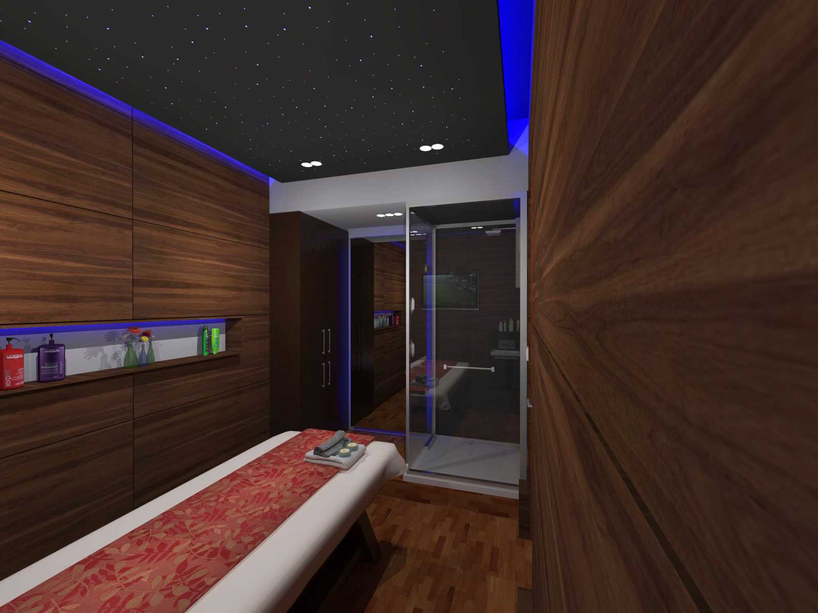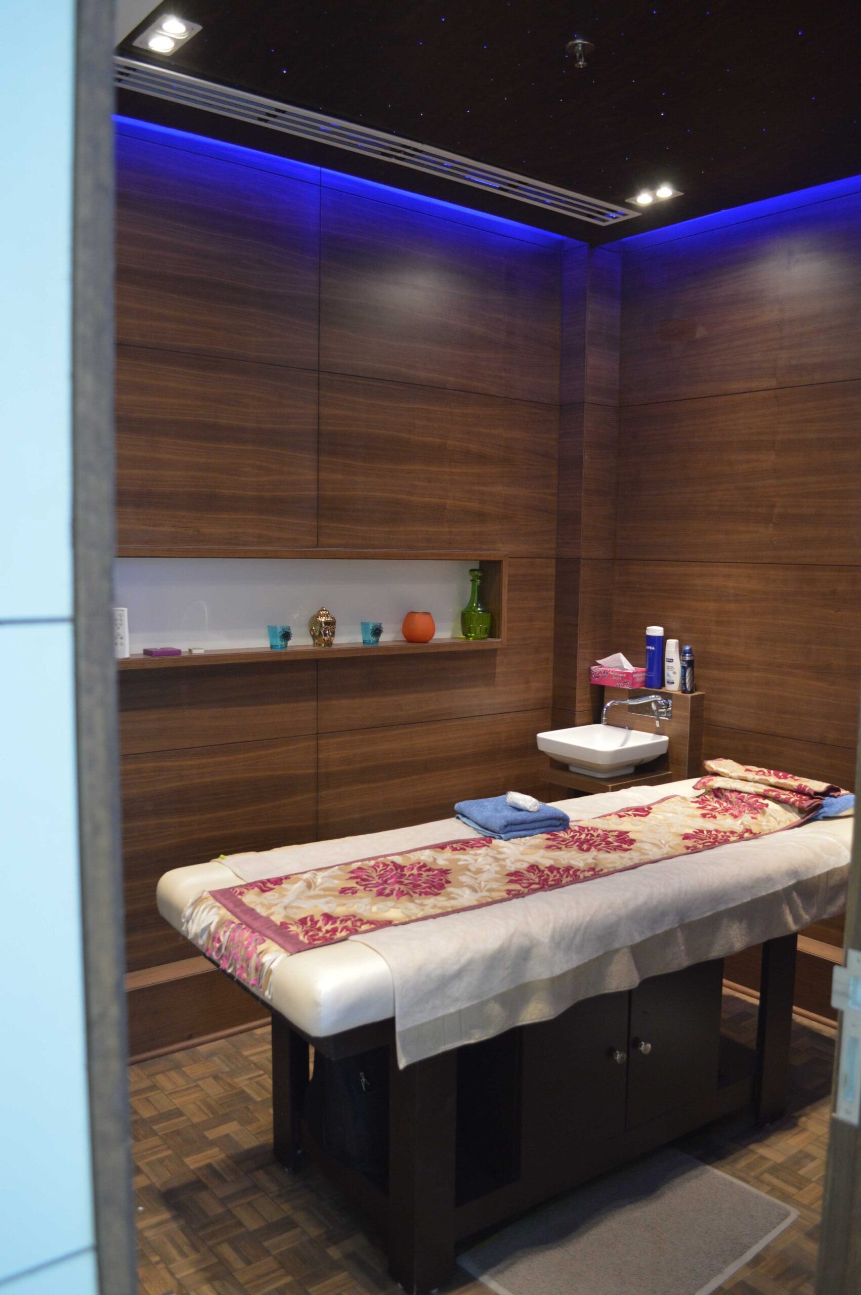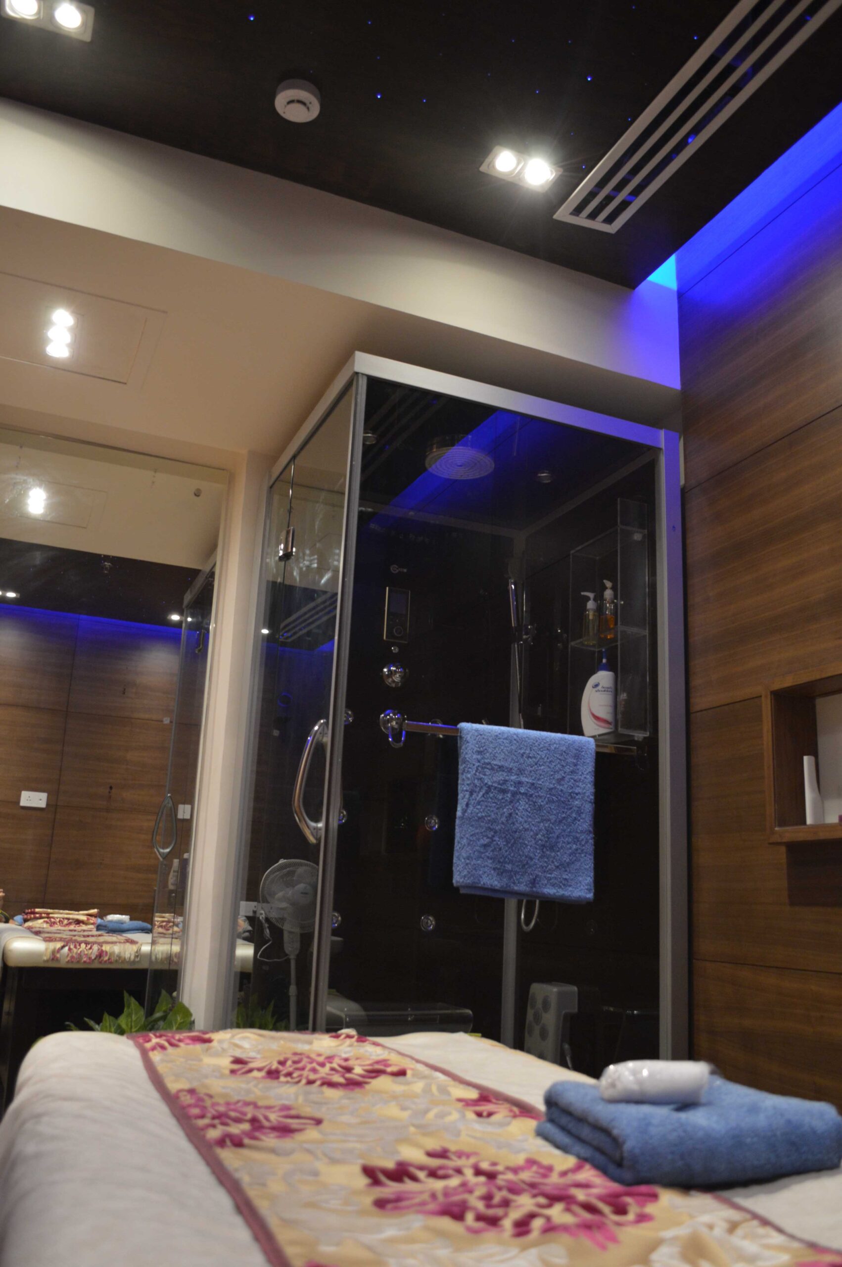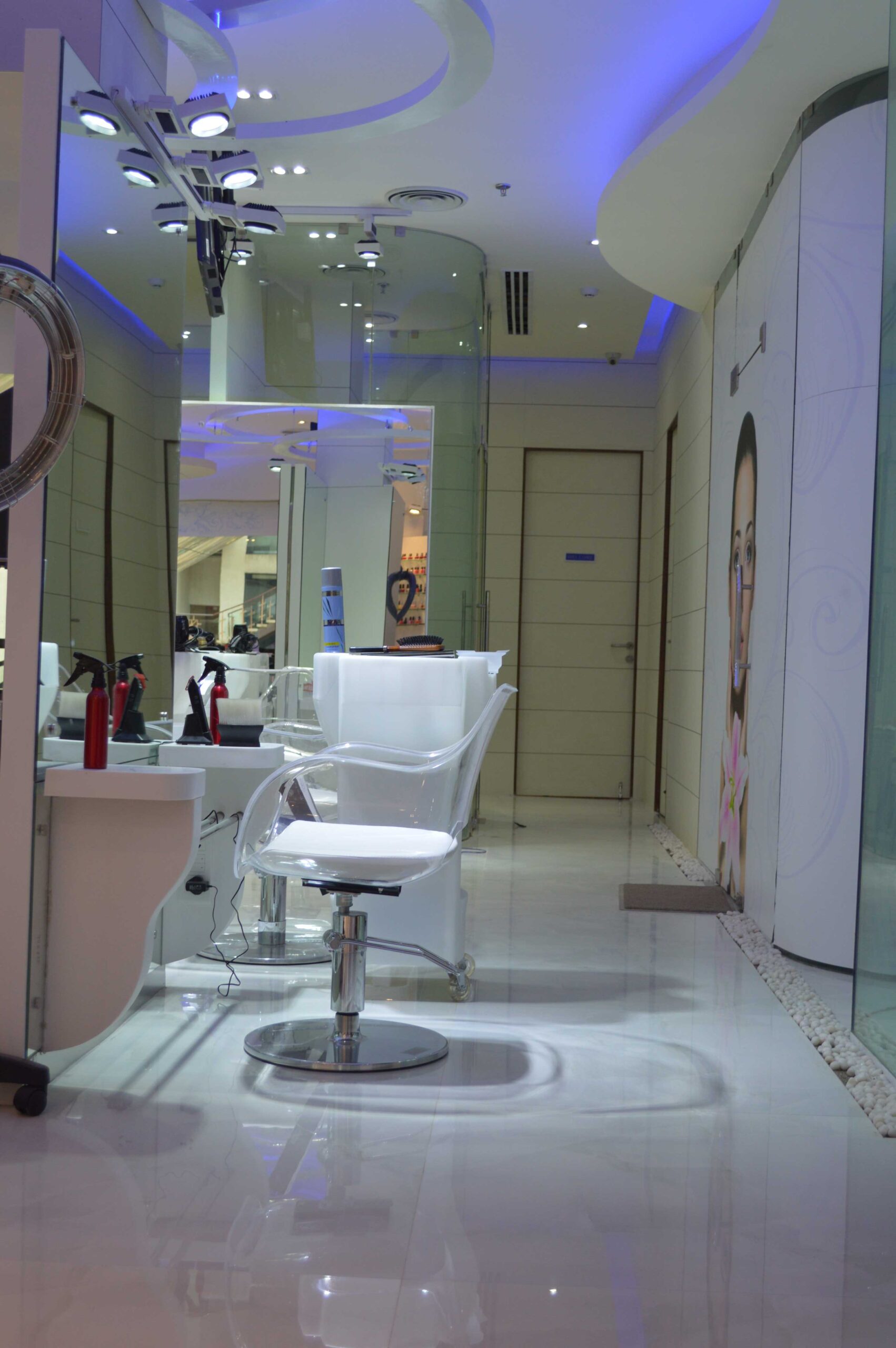 This luxury spa features treatment rooms, mineral bath, salon, fitness area, yoga, and meditation spaces. Support spaces include retail sales, lounge, and locker rooms. The project is located in various locations within Gurgaon, Haryana.